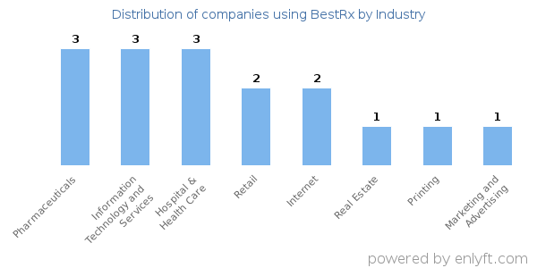 We have data on 18 companies that use BestRx. The companies using BestRx are most often found in United States and in the Pharmaceuticals industry. BestRx is most often used by companies with 50-200 employees and 1M-10M dollars in revenue. Our data for BestRx usage goes back as far as 2 years and 6 months.