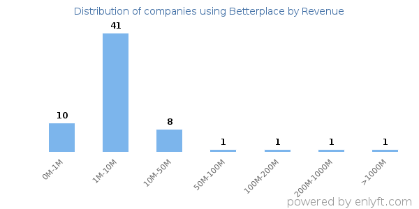 Of all the customers that are using Betterplace, a majority (68%) are small (<$50M), 14% are large (>$1000M) and 7% are medium-sized.