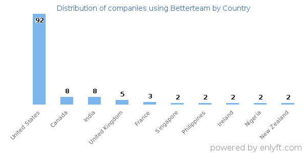 63% of Betterteam customers are in United States, 5% are in Canada and 5% are in India.