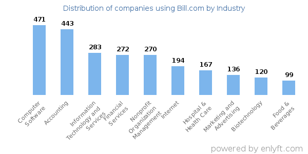 Looking at Bill.com customers by industry, we find that Computer Software (10%), Accounting (9%), Information Technology and Services (6%), Financial Services (6%) and Nonprofit Organization Management (6%) are the largest segments.