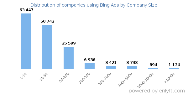 We have data on 186,211 companies that use Bing Ads. The companies using Bing Ads are most often found in United States and in the Retail industry. Bing Ads is most often used by companies with 1-10 employees and 1M-10M dollars in revenue. Our data for Bing Ads usage goes back as far as 9 years.