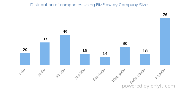 We have data on 266 companies that use BizFlow. The companies using BizFlow are most often found in United States and in the Information Technology and Services industry. BizFlow is most often used by companies with >10000 employees and >1000M dollars in revenue. Our data for BizFlow usage goes back as far as 10 years and 3 months.