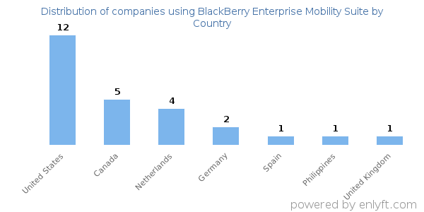 43% of BlackBerry Enterprise Mobility Suite customers are in United States, 16% are in Canada and 12% are in Netherlands.