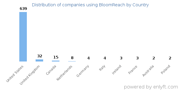 We have data on 783 companies that use BloomReach. The companies using BloomReach are most often found in United States and in the Retail industry. BloomReach is most often used by companies with 1-10 employees and 1M-10M dollars in revenue. Our data for BloomReach usage goes back as far as 8 years and 11 months.
