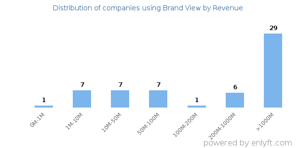 We have data on 61 companies that use Brand View. The companies using Brand View are most often found in United States and in the Retail industry. Brand View is most often used by companies with >10000 employees and >1000M dollars in revenue. Our data for Brand View usage goes back as far as 8 years and 3 months.