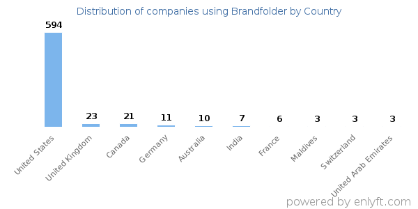 We have data on 752 companies that use Brandfolder. The companies using Brandfolder are most often found in United States and in the Retail industry. Brandfolder is most often used by companies with 1-10 employees and 10M-50M dollars in revenue. Our data for Brandfolder usage goes back as far as 8 years and 2 months.
