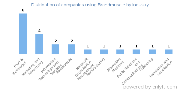 We have data on 36 companies that use Brandmuscle. The companies using Brandmuscle are most often found in United States and in the Food & Beverages industry. Brandmuscle is most often used by companies with 50-200 employees and >1000M dollars in revenue. Our data for Brandmuscle usage goes back as far as 8 years and 7 months.