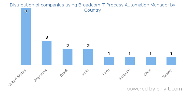 32% of Broadcom IT Process Automation Manager customers are in United States, 11% are in Argentina, 6% are in Brazil and 6% are in India.