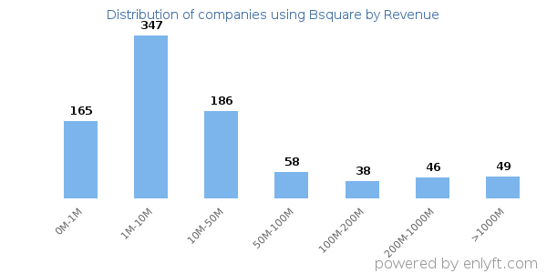 We have data on 945 companies that use Bsquare. The companies using Bsquare are most often found in United States and in the Food & Beverages industry. Bsquare is most often used by companies with 10-50 employees and 1M-10M dollars in revenue. Our data for Bsquare usage goes back as far as 10 years and 3 months.