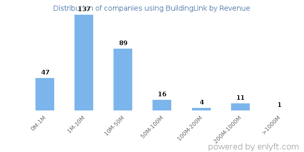 We have data on 519 companies that use BuildingLink. The companies using BuildingLink are most often found in United States and in the Real Estate industry. BuildingLink is most often used by companies with 1-10 employees and 1M-10M dollars in revenue. Our data for BuildingLink usage goes back as far as 5 years and 2 months.