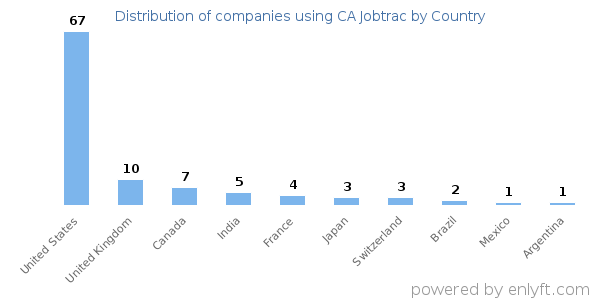We have data on 107 companies that use CA Jobtrac. The companies using CA Jobtrac are most often found in United States and in the Information Technology and Services industry. CA Jobtrac is most often used by companies with >10000 employees and >1000M dollars in revenue. Our data for CA Jobtrac usage goes back as far as 10 years and 2 months.