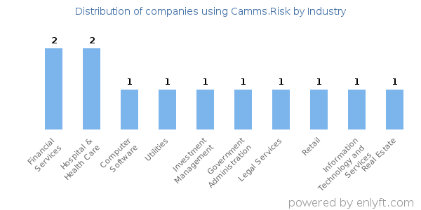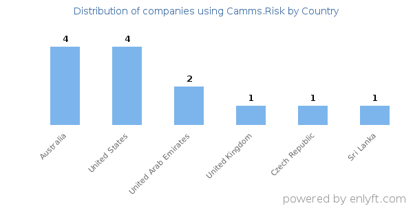 We have data on 13 companies that use Camms.Risk. The companies using Camms.Risk are most often found in Australia and in the Financial Services industry. Camms.Risk is most often used by companies with 1000-5000 employees and 10M-50M dollars in revenue. Our data for Camms.Risk usage goes back as far as 2 years and 8 months.