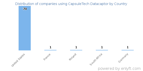 We have data on 74 companies that use CapsuleTech Datacaptor. The companies using CapsuleTech Datacaptor are most often found in United States and in the Hospital & Health Care industry. CapsuleTech Datacaptor is most often used by companies with >10000 employees and >1000M dollars in revenue. Our data for CapsuleTech Datacaptor usage goes back as far as 9 years and 3 months.