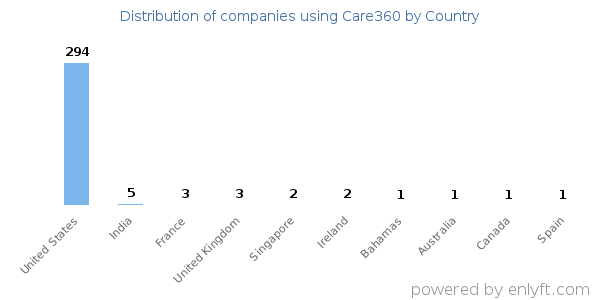 We have data on 318 companies that use Care360. The companies using Care360 are most often found in United States and in the Hospital & Health Care industry. Care360 is most often used by companies with 10-50 employees and 1M-10M dollars in revenue. Our data for Care360 usage goes back as far as 10 years and 2 months.