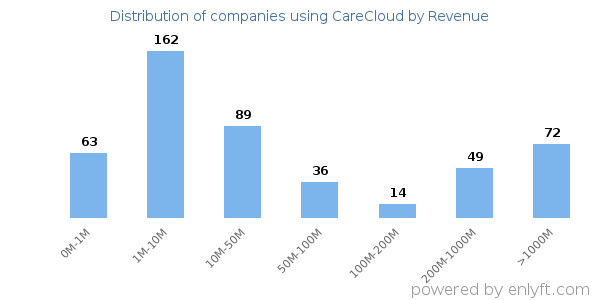 Of all the customers that are using CareCloud, a majority (64%) are small (<$50M), 25% are large (>$1000M) and 7% are medium-sized.
