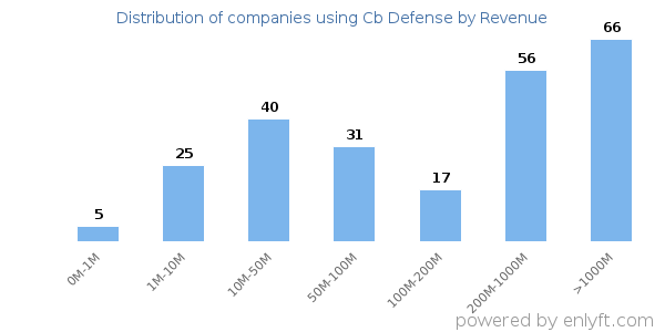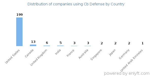 We have data on 246 companies that use Cb Defense. The companies using Cb Defense are most often found in United States and in the Information Technology and Services industry. Cb Defense is most often used by companies with 1000-5000 employees and >1000M dollars in revenue. Our data for Cb Defense usage goes back as far as 8 years and 5 months.