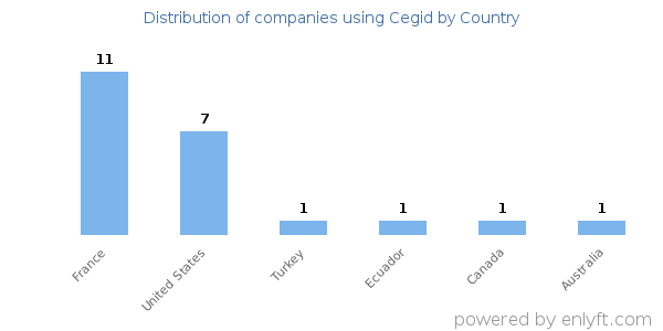 We have data on 22 companies that use Cegid. The companies using Cegid are most often found in France and in the Computer Software industry. Cegid is most often used by companies with 50-200 employees and 1M-10M dollars in revenue. Our data for Cegid usage goes back as far as 8 years and 5 months.