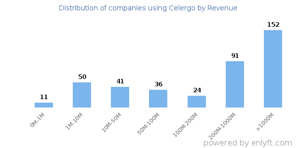 We have data on 426 companies that use Celergo. The companies using Celergo are most often found in United States and in the Computer Software industry. Celergo is most often used by companies with 1000-5000 employees and >1000M dollars in revenue. Our data for Celergo usage goes back as far as 8 years and 5 months.