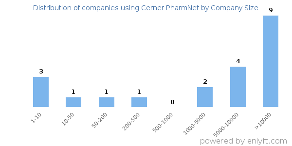 Of all the customers that are using Cerner PharmNet, a majority (59%) are large (>1000 employees), 11% are small (<50 employees) and 2% are medium-sized.