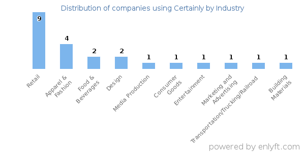 Looking at Certainly customers by industry, we find that Retail (34%) and Apparel & Fashion (13%) are the largest segments.