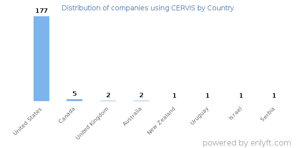 We have data on 198 companies that use CERVIS. The companies using CERVIS are most often found in United States and in the Nonprofit Organization Management industry. CERVIS is most often used by companies with 50-200 employees and 1M-10M dollars in revenue. Our data for CERVIS usage goes back as far as 5 years and 2 months.