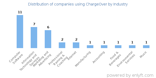 We have data on 38 companies that use ChargeOver. The companies using ChargeOver are most often found in United States and in the Computer Software industry. ChargeOver is most often used by companies with 10-50 employees and 1M-10M dollars in revenue. Our data for ChargeOver usage goes back as far as 8 years and 4 months.