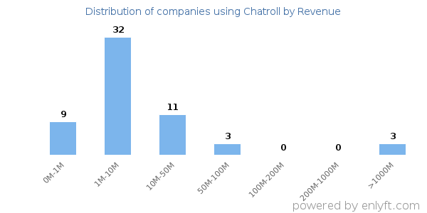 We have data on 152 companies that use Chatroll. The companies using Chatroll are most often found in United States and in the Broadcast Media industry. Chatroll is most often used by companies with 1-10 employees and 1M-10M dollars in revenue. Our data for Chatroll usage goes back as far as 3 years.