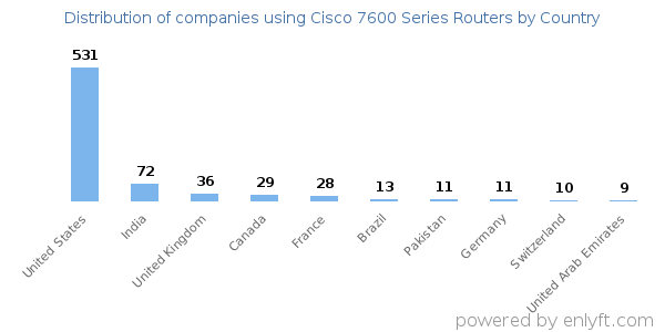 58% of Cisco 7600 Series Routers customers are in United States and 8% are in India.