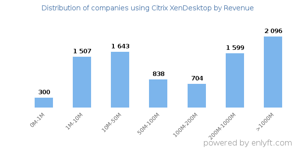 Of all the customers that are using Citrix XenDesktop, 36% are small (<$50M), 18% are medium-sized and 42% are large (>$1000M).