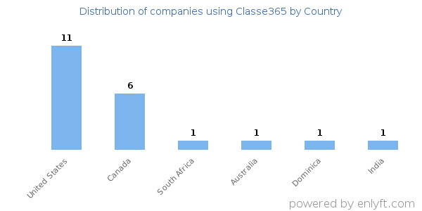 We have data on 21 companies that use Classe365. The companies using Classe365 are most often found in United States and in the Education Management industry. Classe365 is most often used by companies with 50-200 employees and 1M-10M dollars in revenue. Our data for Classe365 usage goes back as far as 8 years and 2 months.
