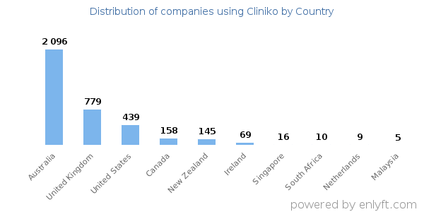 We have data on 4,112 companies that use Cliniko. The companies using Cliniko are most often found in Australia and in the Health, Wellness and Fitness industry. Cliniko is most often used by companies with 1-10 employees and 1M-10M dollars in revenue. Our data for Cliniko usage goes back as far as 5 years and 2 months.