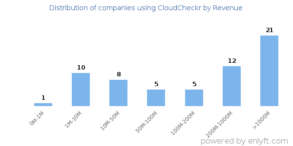 We have data on 64 companies that use CloudCheckr. The companies using CloudCheckr are most often found in United States and in the Information Technology and Services industry. CloudCheckr is most often used by companies with >10000 employees and >1000M dollars in revenue. Our data for CloudCheckr usage goes back as far as 4 years and 5 months.