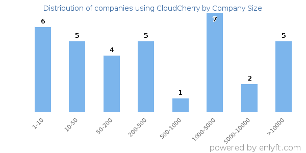 We have data on 35 companies that use CloudCherry. The companies using CloudCherry are most often found in United States and in the Computer Software industry. CloudCherry is most often used by companies with 1000-5000 employees and 10M-50M dollars in revenue. Our data for CloudCherry usage goes back as far as 8 years and 6 months.