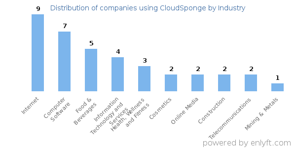 We have data on 69 companies that use CloudSponge. The companies using CloudSponge are most often found in United States and in the Internet industry. CloudSponge is most often used by companies with 1-10 employees and 1M-10M dollars in revenue. Our data for CloudSponge usage goes back as far as 8 years and 5 months.