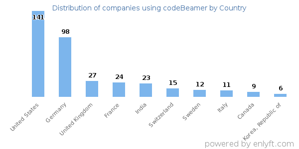 We have data on 454 companies that use codeBeamer. The companies using codeBeamer are most often found in United States and in the Information Technology and Services industry. codeBeamer is most often used by companies with >10000 employees and >1000M dollars in revenue. Our data for codeBeamer usage goes back as far as 8 years and 4 months.
