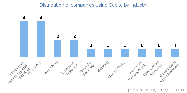 Looking at Cogito customers by industry, we find that Information Technology and Services (16%), Insurance (16%), Publishing (6%) and Computer Software (6%) are the largest segments.