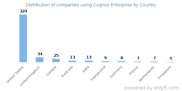 66% of Cognos Enterprise customers are in United States and 7% are in United Kingdom.