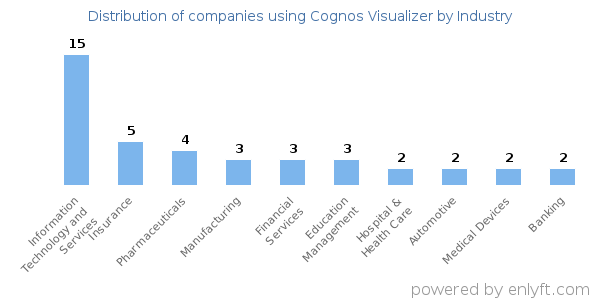 We have data on 61 companies that use Cognos Visualizer. The companies using Cognos Visualizer are most often found in United States and in the Information Technology and Services industry. Cognos Visualizer is most often used by companies with >10000 employees and >1000M dollars in revenue. Our data for Cognos Visualizer usage goes back as far as 9 years and 9 months.