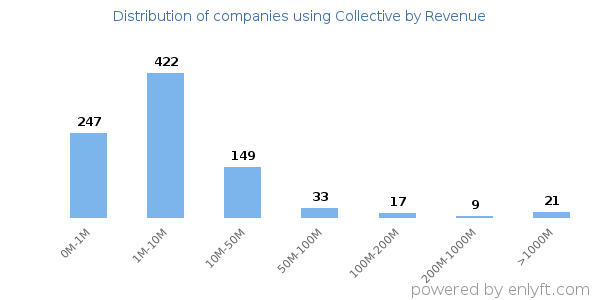 We have data on 1,018 companies that use Collective. The companies using Collective are most often found in United States and in the Retail industry. Collective is most often used by companies with 1-10 employees and 1M-10M dollars in revenue. Our data for Collective usage goes back as far as 8 years and 10 months.