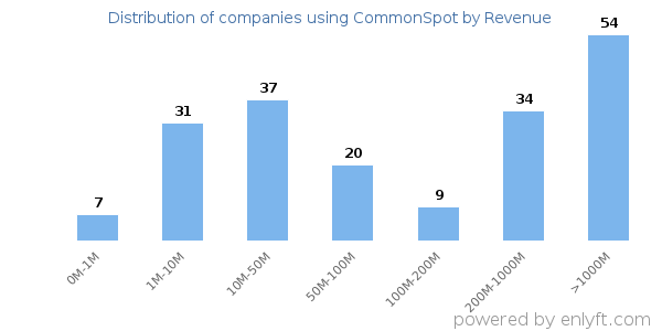 We have data on 195 companies that use CommonSpot. The companies using CommonSpot are most often found in United States and in the Higher Education industry. CommonSpot is most often used by companies with >10000 employees and >1000M dollars in revenue. Our data for CommonSpot usage goes back as far as 9 years and 10 months.