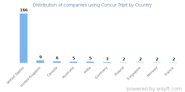 We have data on 244 companies that use Concur TripIt. The companies using Concur TripIt are most often found in United States and in the Computer Software industry. Concur TripIt is most often used by companies with 10-50 employees and >1000M dollars in revenue. Our data for Concur TripIt usage goes back as far as 8 years and 7 months.