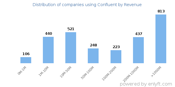 We have data on 2,959 companies that use Confluent. The companies using Confluent are most often found in United States and in the Information Technology and Services industry. Confluent is most often used by companies with >10000 employees and >1000M dollars in revenue. Our data for Confluent usage goes back as far as 7 years and 6 months.