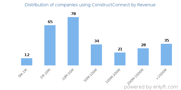 We have data on 286 companies that use ConstructConnect. The companies using ConstructConnect are most often found in United States and in the Construction industry. ConstructConnect is most often used by companies with 50-200 employees and 10M-50M dollars in revenue. Our data for ConstructConnect usage goes back as far as 4 years.