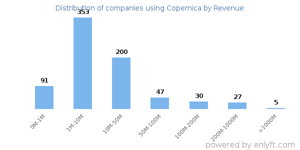 Of all the customers that are using Copernica, a majority (74%) are small (<$50M), 6% are large (>$1000M) and 15% are medium-sized.