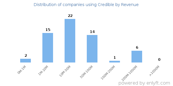 Of all the customers that are using Credible, a majority (57%) are small (<$50M), 9% are large (>$1000M) and 22% are medium-sized.