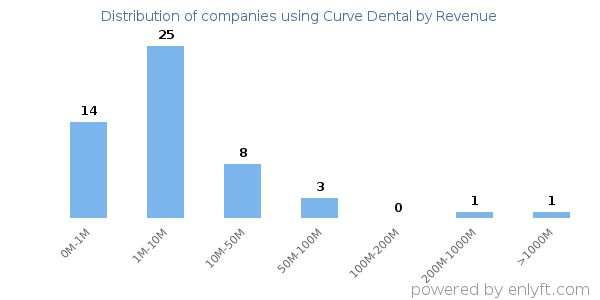 We have data on 54 companies that use Curve Dental. The companies using Curve Dental are most often found in United States and in the Hospital & Health Care industry. Curve Dental is most often used by companies with 1-10 employees and 1M-10M dollars in revenue. Our data for Curve Dental usage goes back as far as 5 years and 7 months.