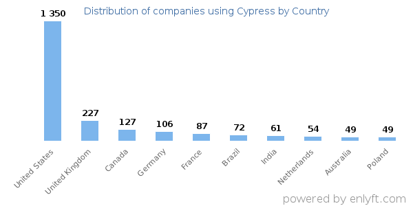We have data on 2,758 companies that use Cypress. The companies using Cypress are most often found in United States and in the Information Technology and Services industry. Cypress is most often used by companies with 50-200 employees and 10M-50M dollars in revenue. Our data for Cypress usage goes back as far as 4 years and 1 months.