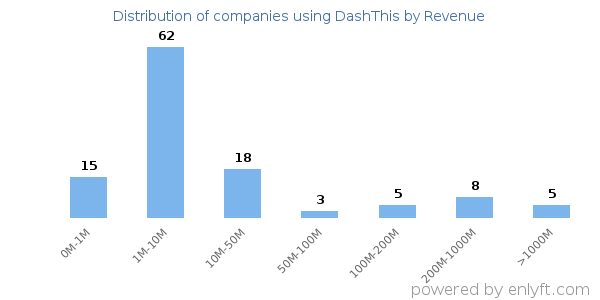 Of all the customers that are using DashThis, a majority (77%) are small (<$50M), 7% are large (>$1000M) and 0% are medium-sized.