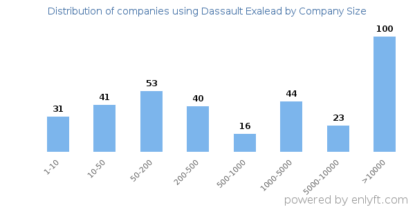 Of all the customers that are using Dassault Exalead, 32% are small (<$50M), 13% are medium-sized and 47% are large (>$1000M).