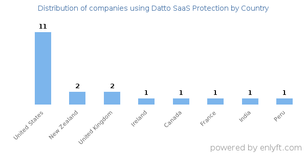 We have data on 20 companies that use Datto SaaS Protection. The companies using Datto SaaS Protection are most often found in United States and in the Information Technology and Services industry. Datto SaaS Protection is most often used by companies with 10-50 employees and 1M-10M dollars in revenue. Our data for Datto SaaS Protection usage goes back as far as 5 years.